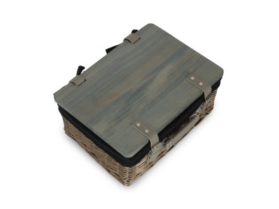 14" ANTIQUE WASH HAMPER with WOODEN LID - GREY SAGE LINING