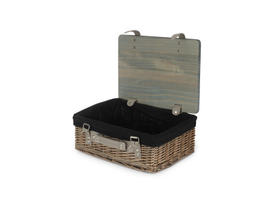 Full antique wash finish willow - pinewood - grey faux leather - removable cotton/polyester lining