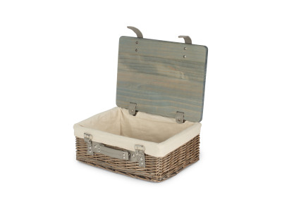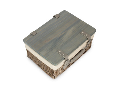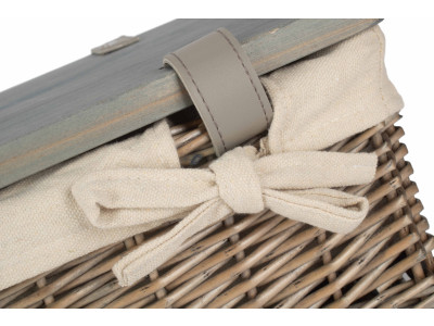 14" ANTIQUE WASH HAMPER with WOODEN LID - GREY SAGE LINING
