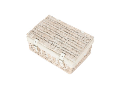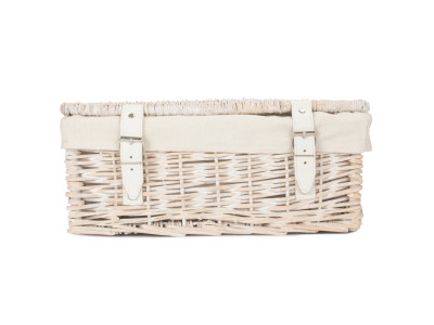 Full white wash finish willow - white faux leather - cotton lining - integral handles