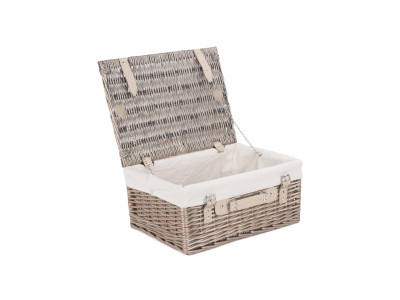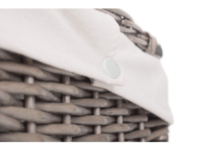 Full antique wash finish willow - cream faux leather - removable cotton lining - metal chains