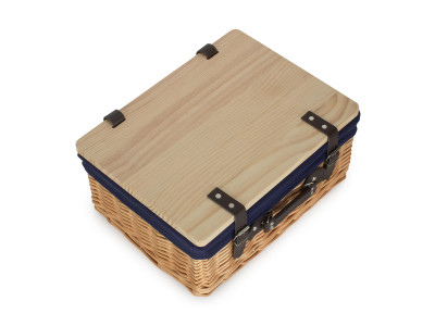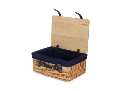 14" BUFF HAMPER with WOODEN LID - NAVY BLUE LINING
