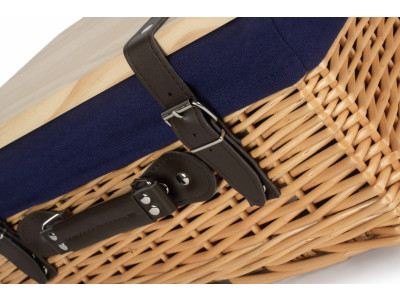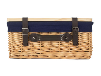 16" Buff Hamper With Wooden Lid - Navy Blue Lining