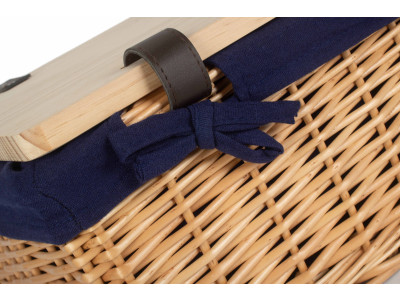 20" BUFF HAMPER with WOODEN LID - NAVY BLUE LINING