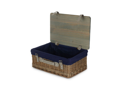 Full antique wash finish willow - pinewood - grey faux leather - removable cotton/polyester lining