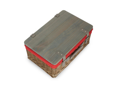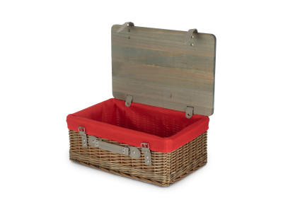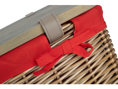 18" Antique Wash Hamper With Wooden Lid - Red Lining