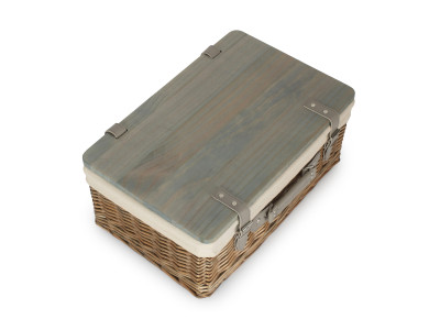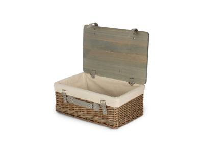 18" ANTIQUE WASH HAMPER with WOODEN LID - GREY SAGE LINING