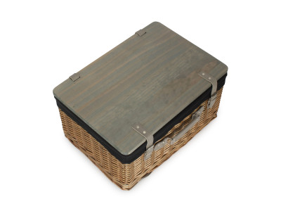 20" ANTIQUE WASH HAMPER with WOODEN LID - GREY SAGE LINING