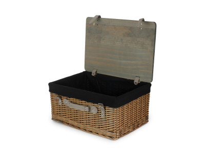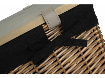16" ANTIQUE WASH HAMPER with WOODEN LID - BLACK LINING