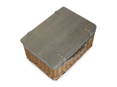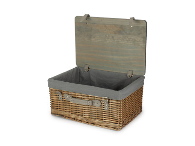 20" Antique Wash Hamper With Wooden Lid - Grey Sage Lining