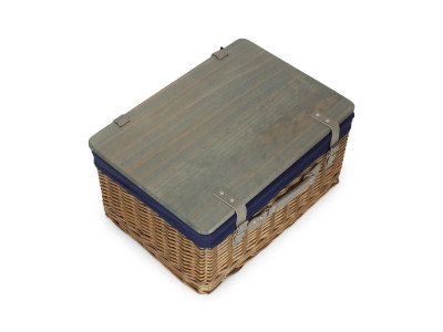 16" BUFF HAMPER with WOODEN LID - NAVY BLUE LINING