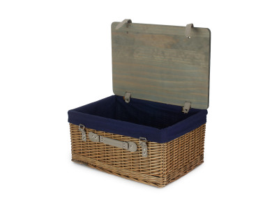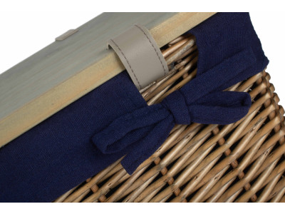 20" Antique Wash Hamper With Wooden Lid - Navy Blue Lining