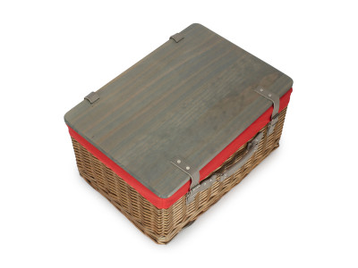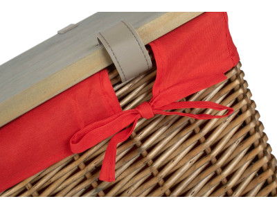 20" Antique Wash Hamper With Wooden Lid - Red Lining