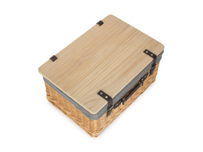 20" BUFF HAMPER with WOODEN LID - GREY SAGE LINING