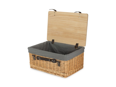 20" Buff Hamper With Wooden Lid - Grey Sage Lining