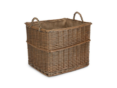 MEDIUM RECTANGULAR LINED WICKER LOG / STORAGE BASKET