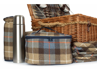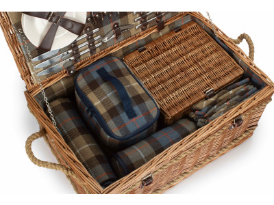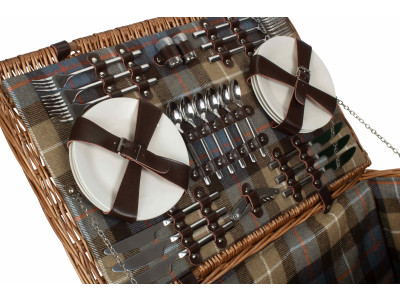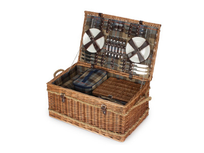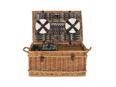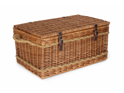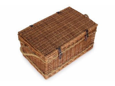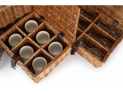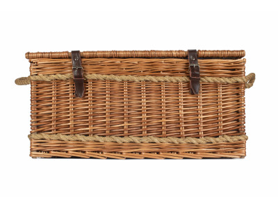 Full light steamed willow with rope handles - tan real leather - stainless steel cutlery