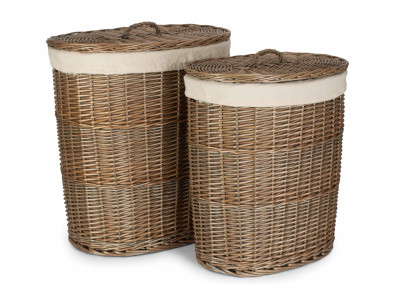 SMALL ANTIQUE WASH OVAL LAUNDRY BASKET with WHITE LINING