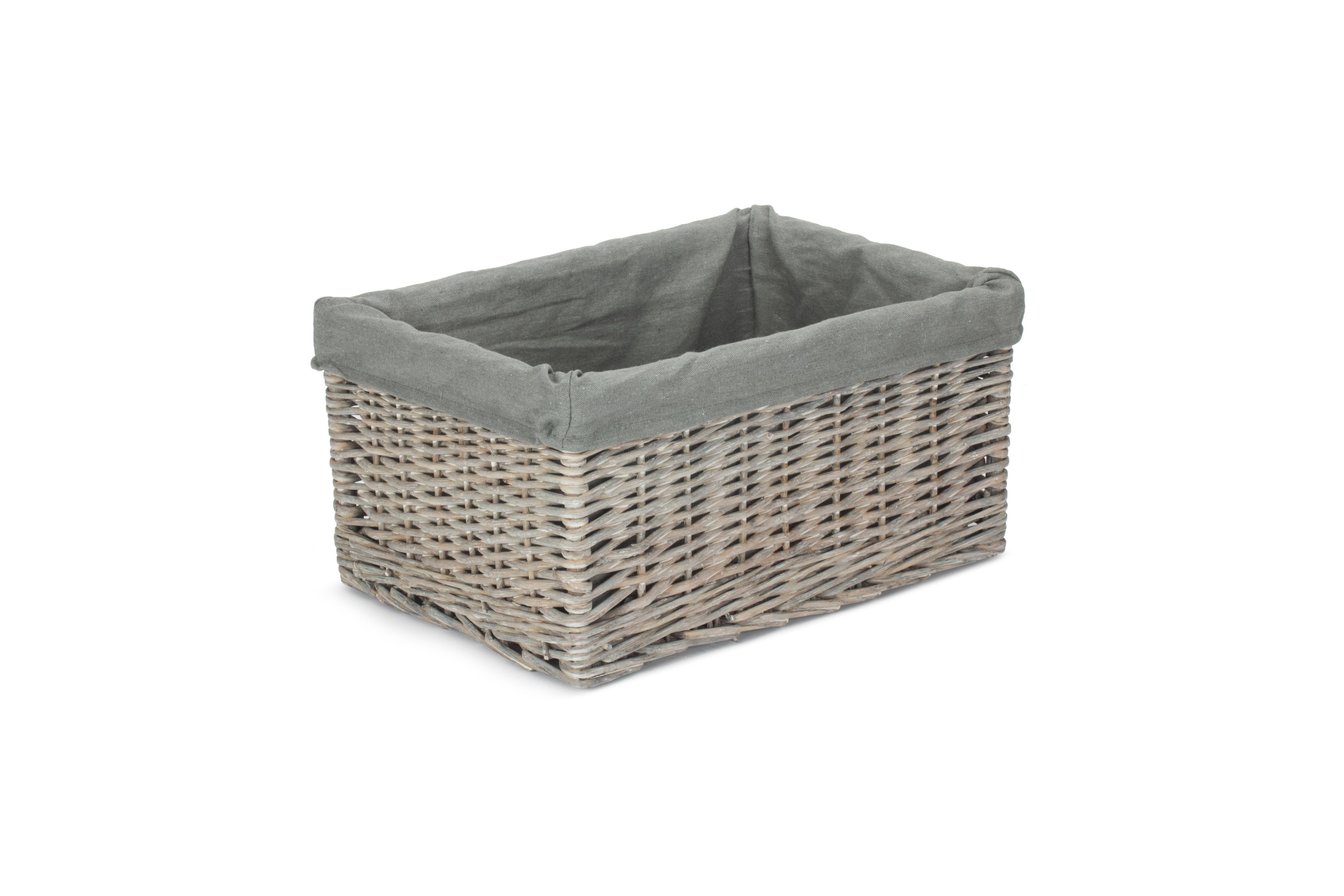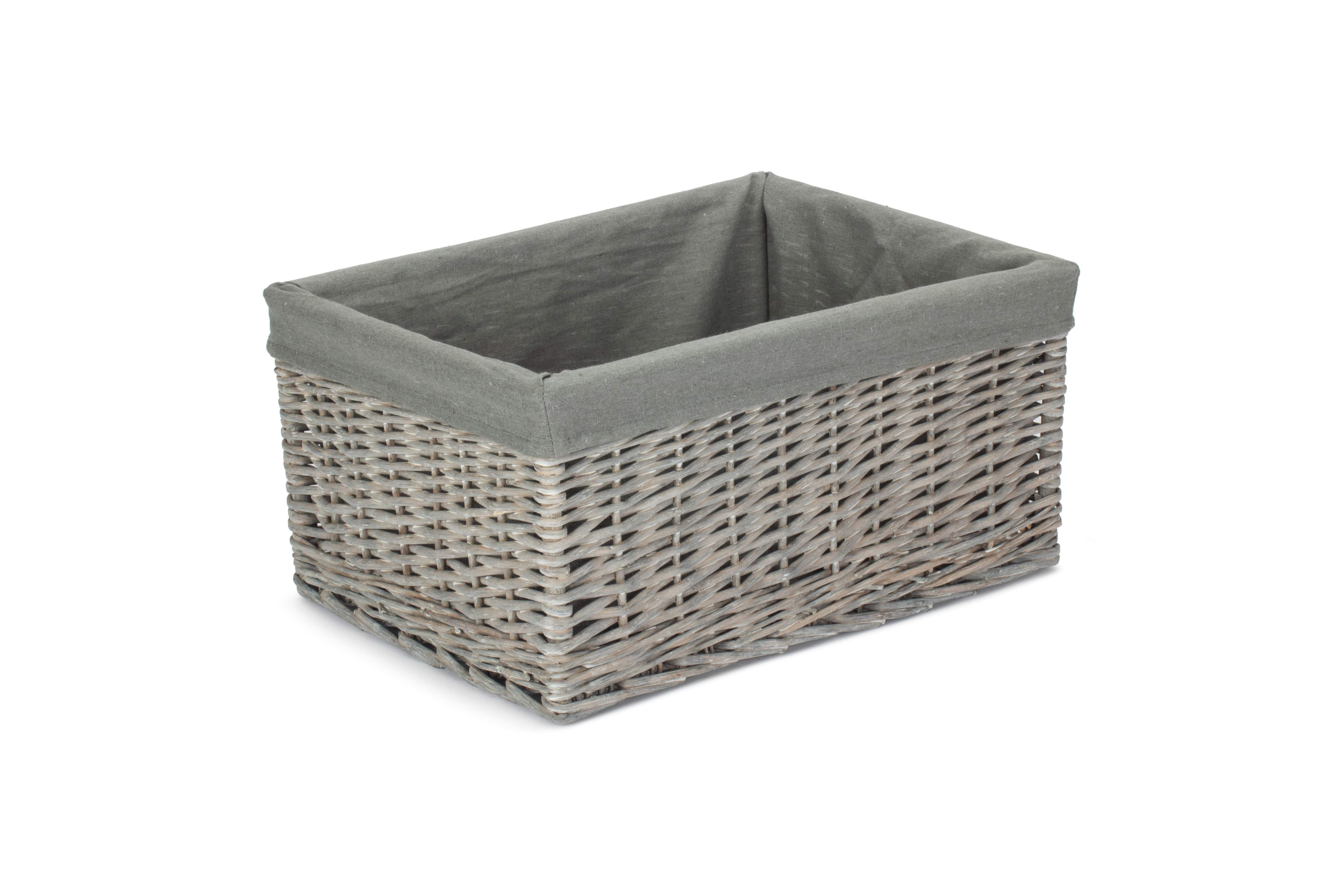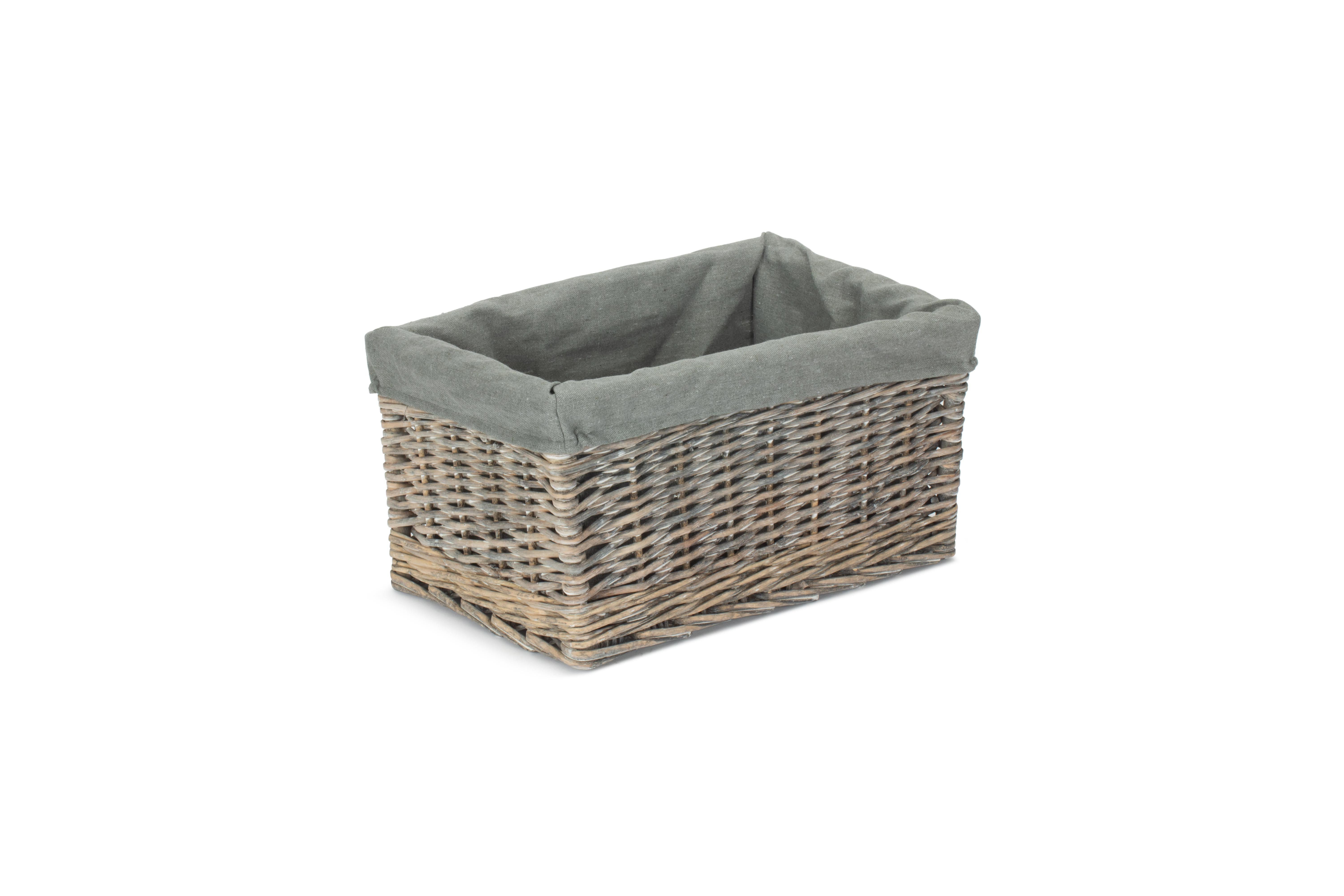 SMALL GREY WASH STORAGE BASKET with GREY SAGE LINING