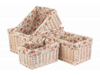ANTIQUE WASH WICKER STORAGE BASKET with LINING SET 3